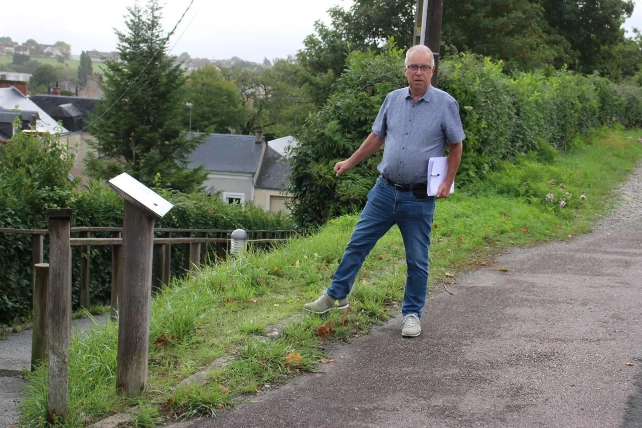 En surplomb de la ville, Gérard Evrard, adjoint au maire, désigne de la main, l’emplacement du Belvédère, face au complexe culturel Saugonna. © Ouest-France