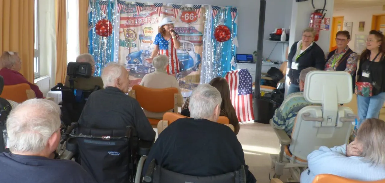 Mercredi après-midi l’association VMEH (Visite des malades en établissement hospitalier) de l’Orne a offert un rayon de soleil aux résidents des Ehpad, Upad et USLD du centre hospitalier intercommunal de Mamers. Pour égayer ce moment récréatif, la chanteuse Roselyne du groupe Variétise a choisi de transporter son public aux États-Unis. Une heure et demie de chants dans la bonne humeur pour une vingtaine de résidents ravis de cet intermède musical.