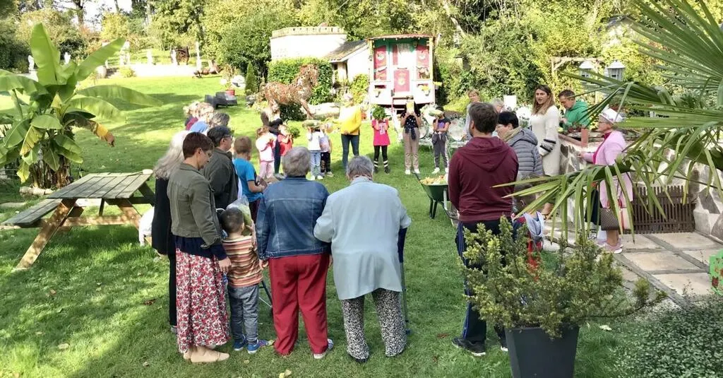 Dans le cadre de la semaine générationnelle, les enfants de la maison Le Belvédère et les résidents de la maison de retraite La Dive, ont été invités au manoir Madrigal de Mamers. Grâce au concours des bénévoles de l’association Passé (Ré)Créatif et du Secours catholique, les enfants et les seniors de l’Ehpad ont réalisé des peintures sur cartonnages et profité de la chasse aux légumes, puis partagé un repas convivial à l’Atelier, table solidarité situé dans le parc du Madrigal.  Dans cette épopée automnale, chaque adulte a accompagné un enfant, ils sont sortis de leur quotidien. Nous sommes heureux de leur faire bénéficier d’un bon moment de partage. C’était l’occasion de les sensibiliser pour la saisonnalité des légumes, et chacun a reçu un carnet des légumes classés par moisÂ