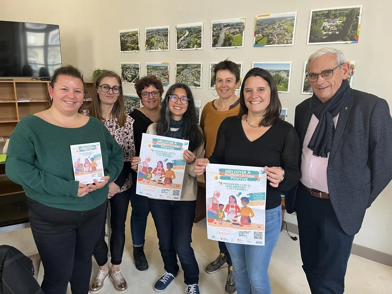 Les élus Mélanie Cosnier (3e en partant de la gauche) et Eric David (à droite) ont présenté les règles du Défi foyers à alimentation positive. © Pays sabolien