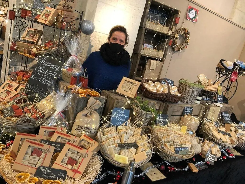 Le marché de Noël d’Anim’en Flèch comptera une cinquantaine de stands. Ici, celui de la Savonnerie des Vertus, en décembre 2021. Archives Ouest-France