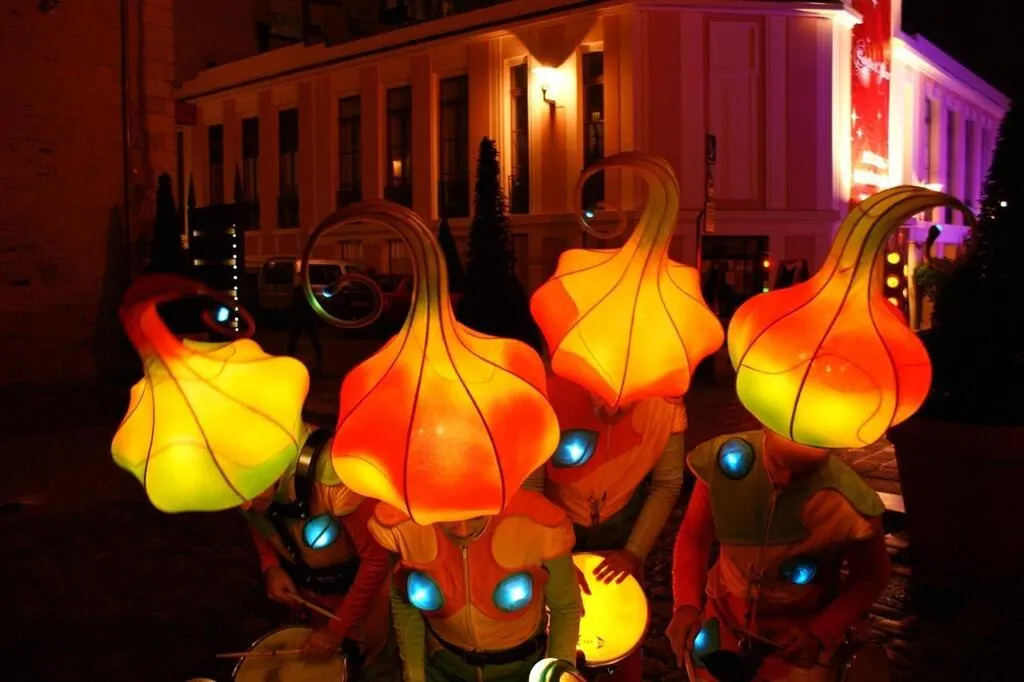Quatre lutins musiciens de la fanfare lumineuse Arco Iris déambuleront dans le centre-ville, samedi 10 décembre. Archives Ouest-France