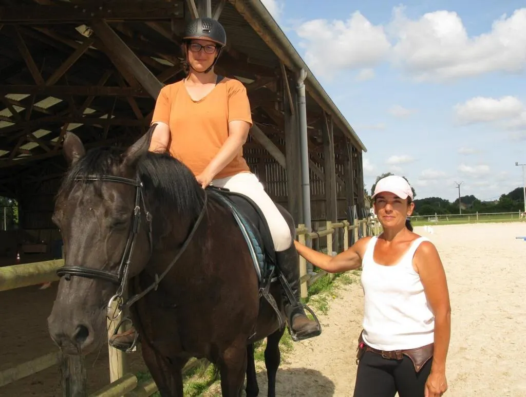 Angélique Bralet, propriétaire des écuries La Bourrelière (à droite), en compagnie d’Amélie Besseau, sur son cheval, Carat. © Ouest-France