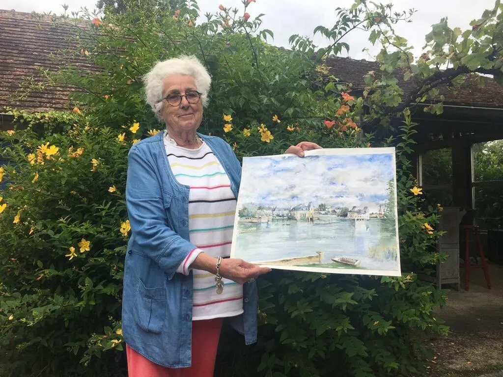 À 80 ans, la peintre sarthoise continue insatiablement de peindre. Elle propose aussi des ateliers pour initier à l’aquarelle et faire découvrir le patrimoine du département.