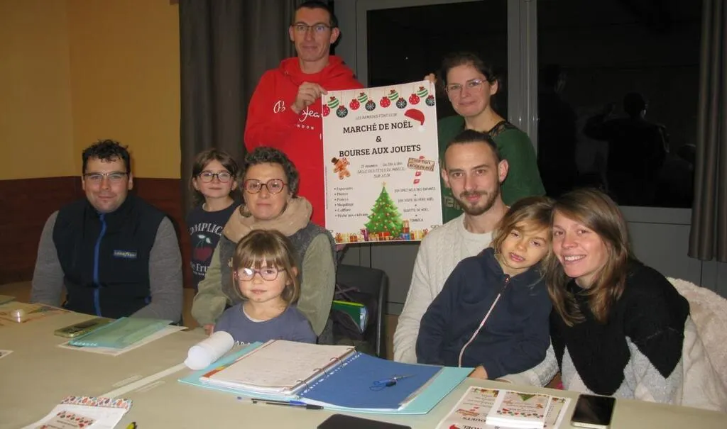 L’association des parents d’élèves prépare la bourse aux jouets et le marchéde Noël. Assis au centre, son président Joris Rolland. © Ouest-France