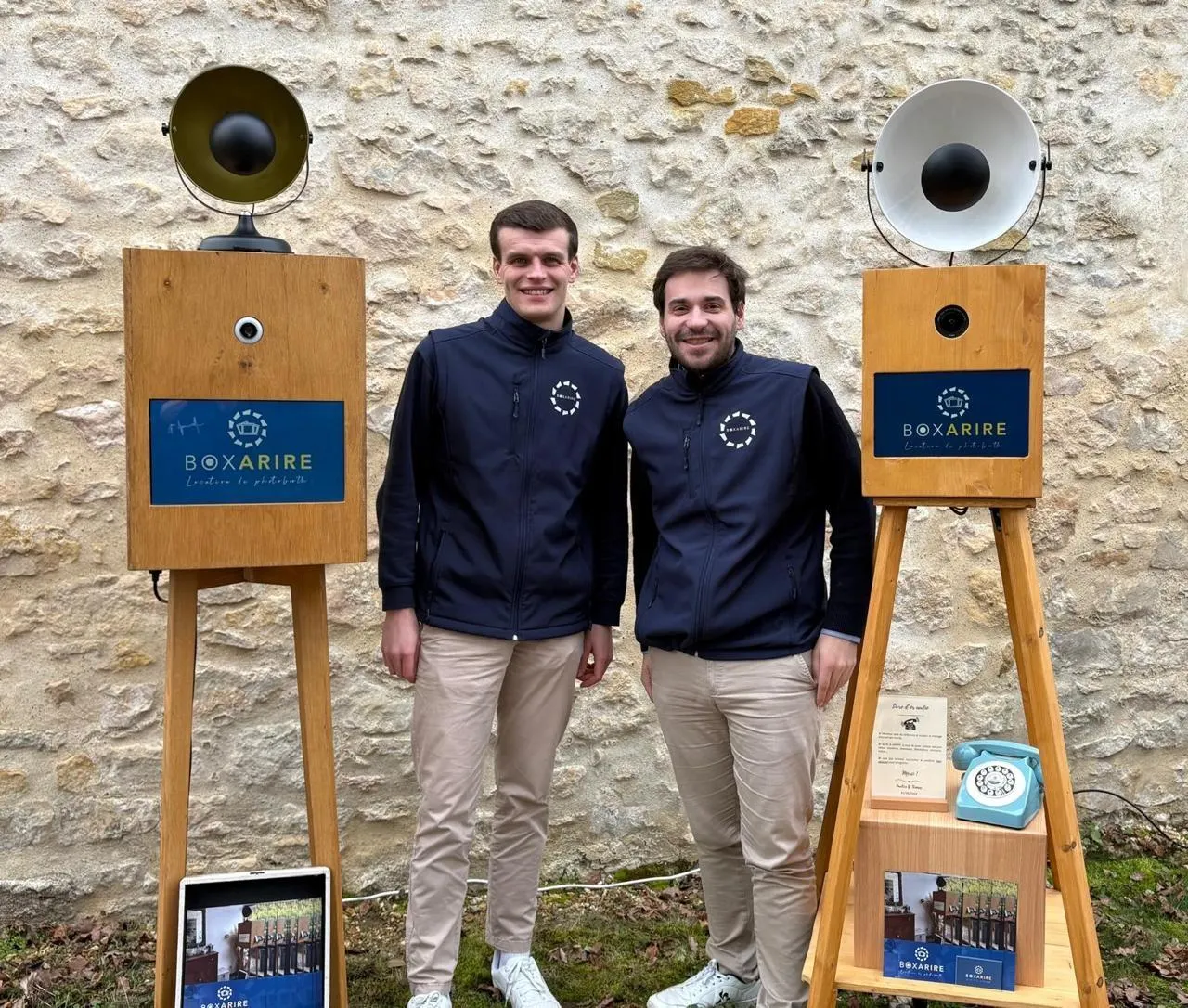 La société Boxarire a entièrement imaginé et conçue ses photobooths. Ludovic (à gauche) et son compère Baptiste (à droite) propose leurs appareils à la location. © Photo Boxarire