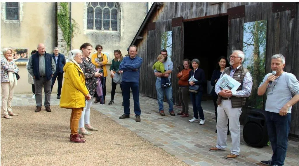 Rémi Lépinay, photographe naturaliste (au micro) et Dominique Perrin, près de lui, ont joué le rôle de guides lors du vernissage. © Le Maine Libre