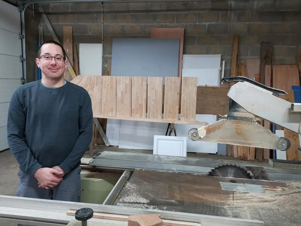 À 39 ans, Laurent Ragot vient d’ouvrir son entreprise d’ébénisterie et de menuiserie à Marigné-Laillé (Sarthe).