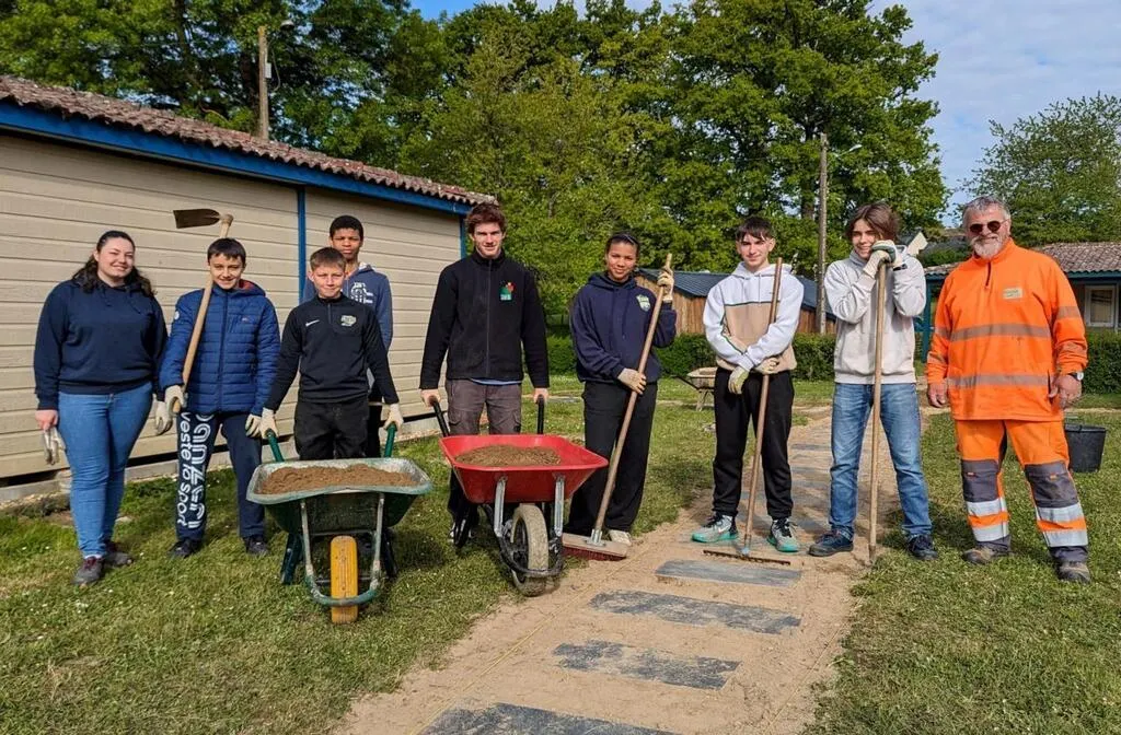 Depuis lundi et jusqu’à vendredi, huit adolescents, âgés de 15 à 17 ans du territoire communautaire, réalisent un chantier au camping municipal. Plus précisément entre les gîtes où ils y réalisent des pas japonais en remplacement des allées pierrées.