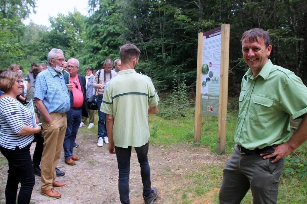 Nicolas Jeannault, directeur de l’agence Pays de la Loire de l’ONF, a présenté aux partenaires locaux ce sentier pédagogique réinventé et modernisé. © Le Maine Libre