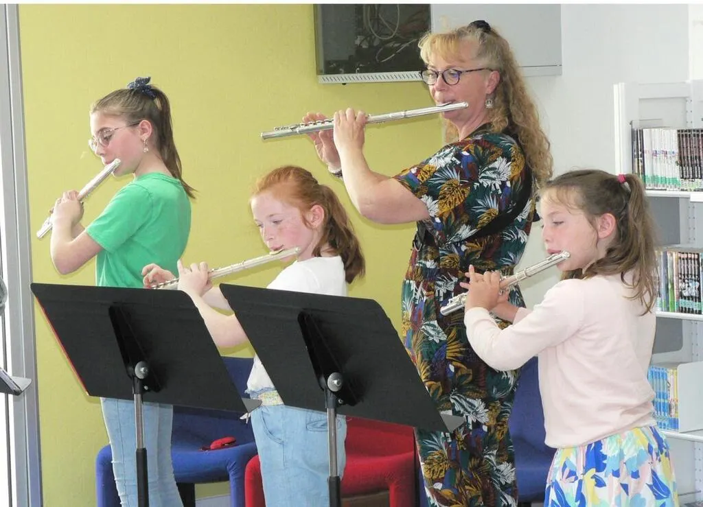 Les élèves de l’école de musique Maine Saosnois ont accompagné les lectures de pièces jouées à la flûte ou chantées. © Ouest-France