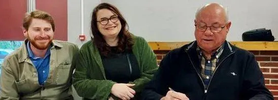 Jérémy Gerber et Anaïs Hulin signent avec Francis Belluau, maire, le contrat de subvention de 5 000 € pour leur installation dans la commune. © Ouest-France