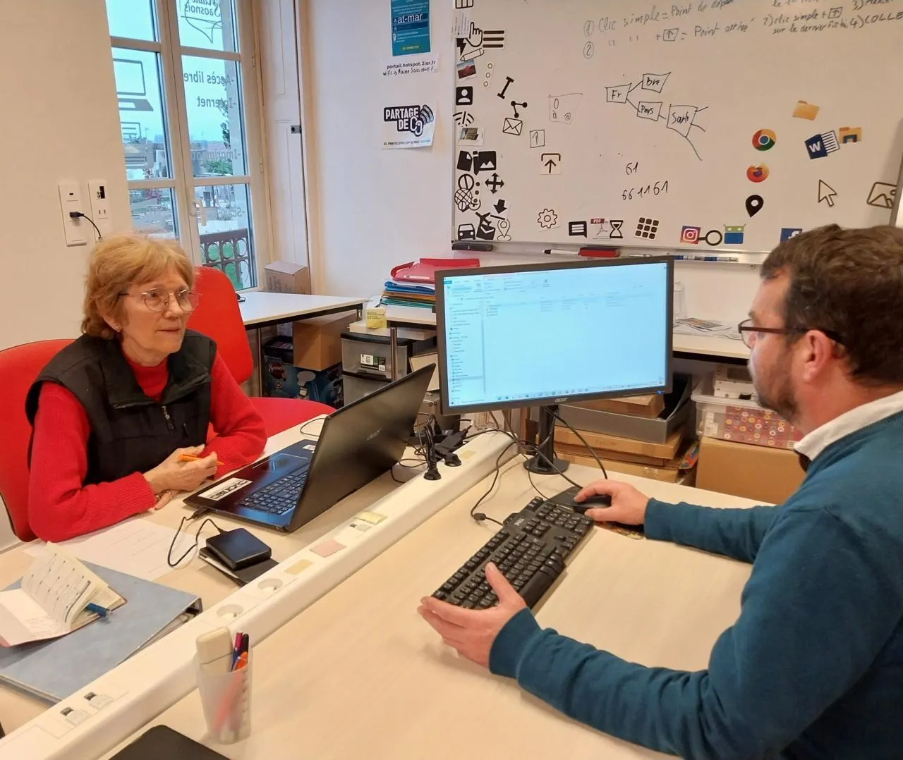 Emmanuel Collet et l’équipe de l’espace public numérique proposent régulièrement des ateliers d’initiation et de perfectionnement de l’outil informatique et peuvent proposer des accompagnements personnalisés. © Ouest-France