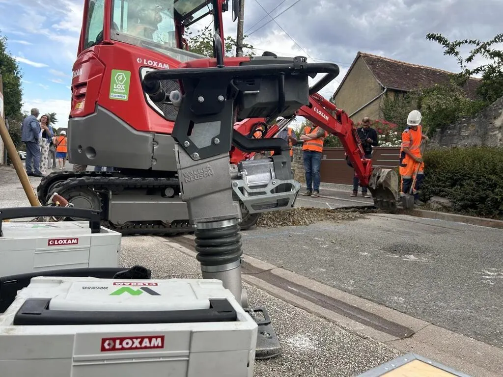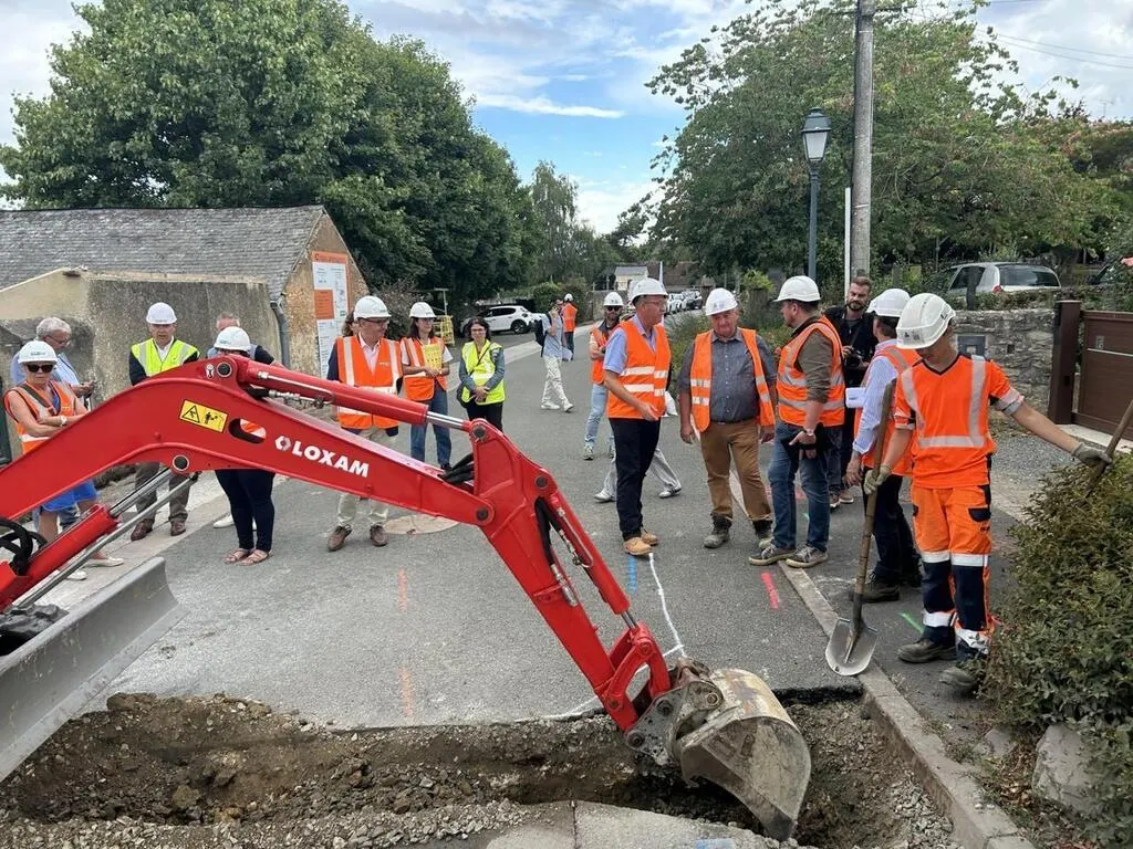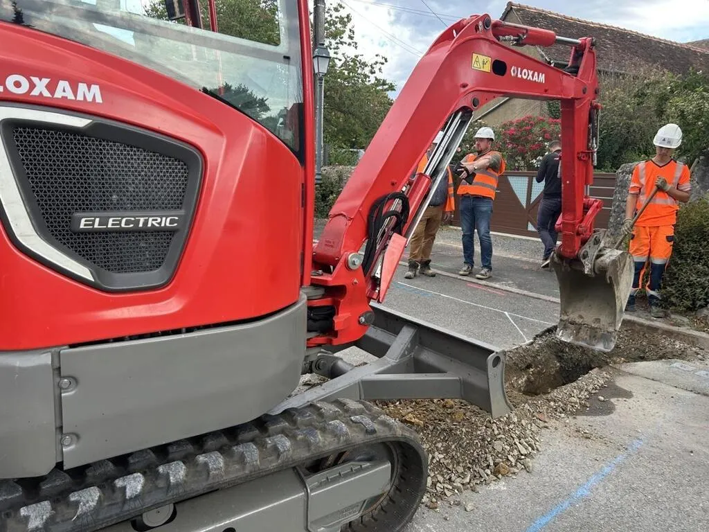 C’est une première expérimentation : un chantier de travaux publics bas carbone, à Brains-sur-Gée. L’enfouissement des réseaux électriques s’effectue en partie par des engins de chantier électriques.