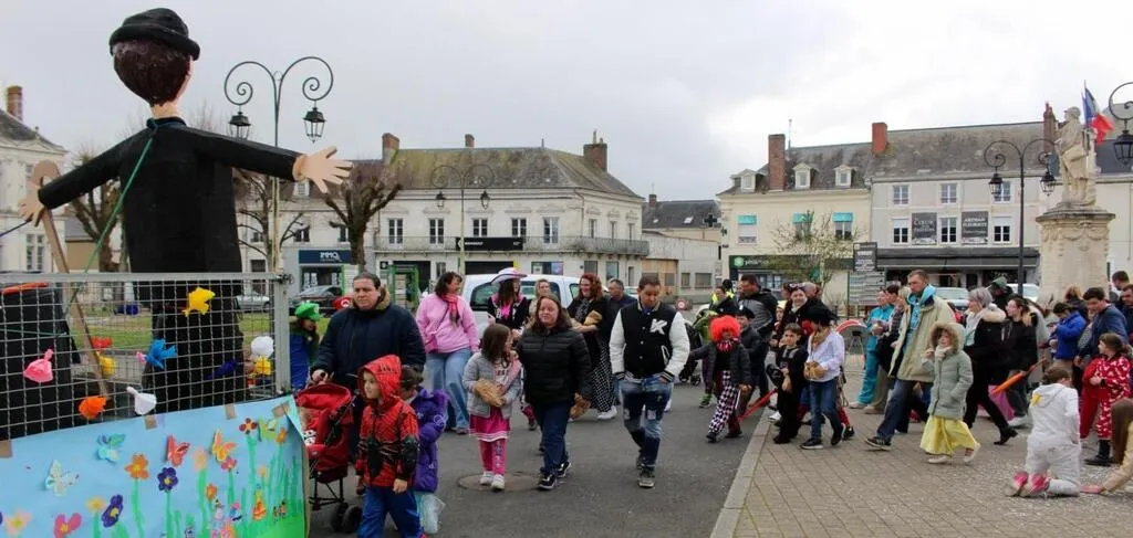 Une foule nombreuse a suivi le bonhomme carnaval dans les rues de Mayet © Le Maine Libre