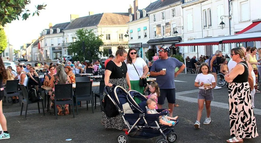 Lorsque la température a un peu baissé, les Mayetais se sont attardés sur la place du village. © Le Maine Libre
