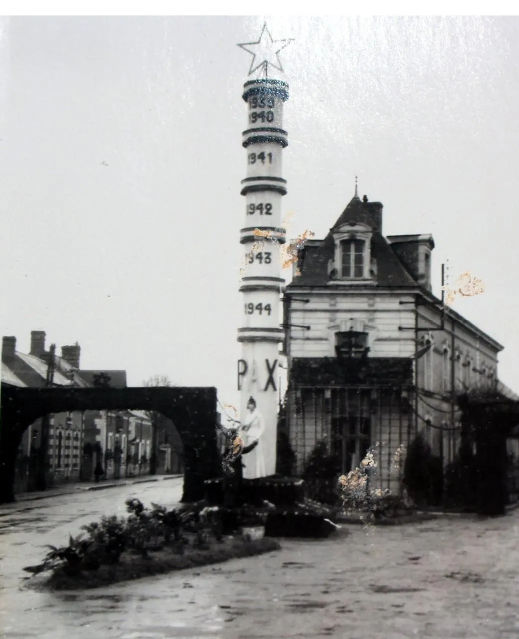 La colonne de la paix avait été dressée à la jonction de la rue de la Pelouse et celle de la gare. © Collection privée M. Cerisier