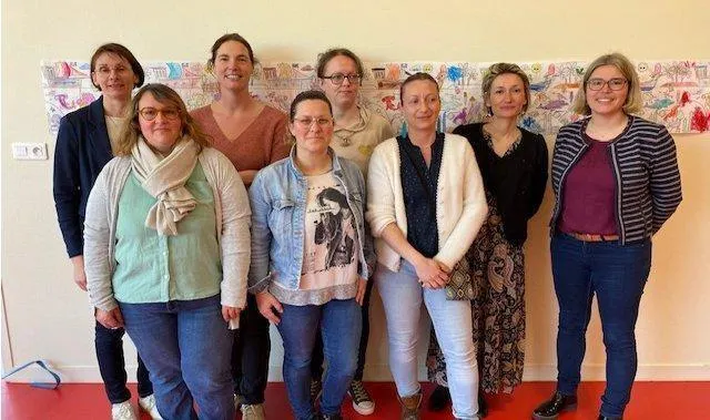 Cinq enseignantes dont une décharge pour la directrice travaillent dans l’établissement. Elles sont accompagnées d’une ASH (aide aux élèves en situation de handicap) et d’une enseignante spécialisée pour les élèves en difficulté. Deux ATSEM (aide service école maternelle) complètent l’équipe éducative.