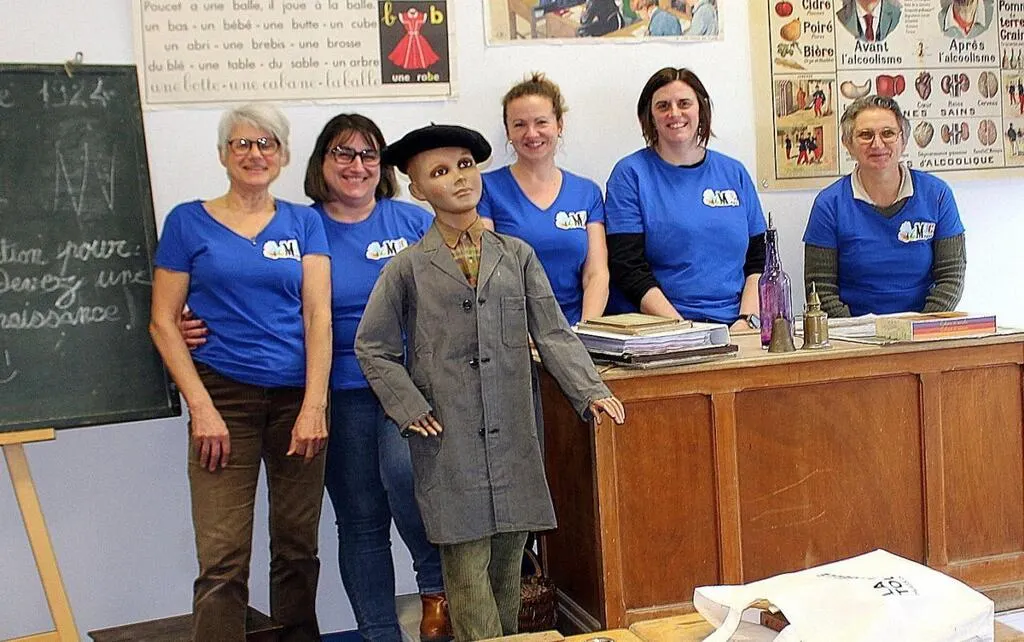 Le tableau noir, les bons points, l’encre de Chine, les plumiers, les vieux cahiers à la belle écriture penchée, l’élève Léon en blouse grise. Tous les détails qui font l’ambiance de la classe de cette école d’autrefois sont bien présents.