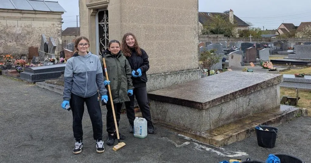 Des jeunes collégiennes ont entretenu le carré militaire à l’occasion de la journée citoyenne. © Ouest-France