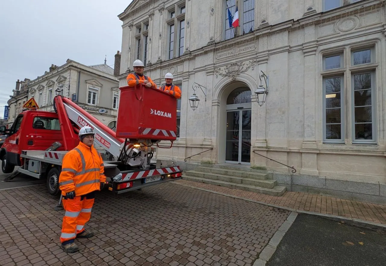 Le personnel des services techniques a procédé, hier matin, à l’installation des décorations de Noël, en partant de la place de l’Hôtel-de-ville.