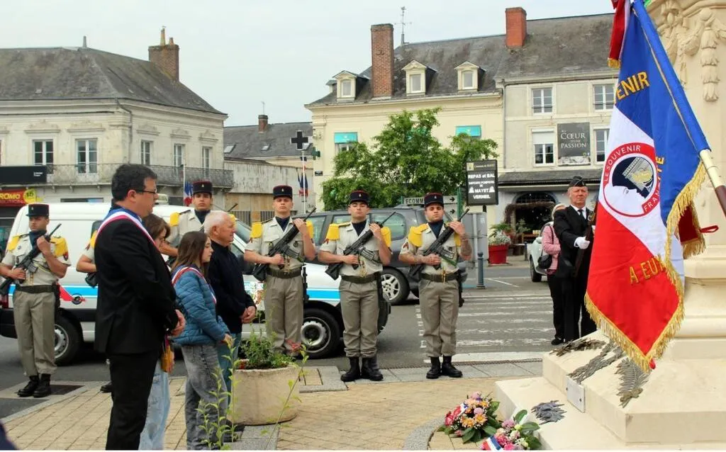 À Mayet, la cérémonie de commémoration de la Victoire du 8 mai 1945 a été marquée par la présence de sept soldats et d’un sous-officier de la 1re compagnie du 2e RIMa.