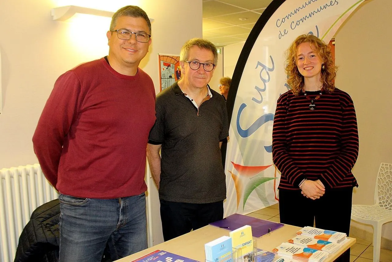 De gauche à droite, Pierre Ouvrard, maire de Mayet, Jean-Luc Trouillard, représentant de l’Unafam et Lison Bougard, coordinatrice santé sud Sarthe. © Le Maine Libre