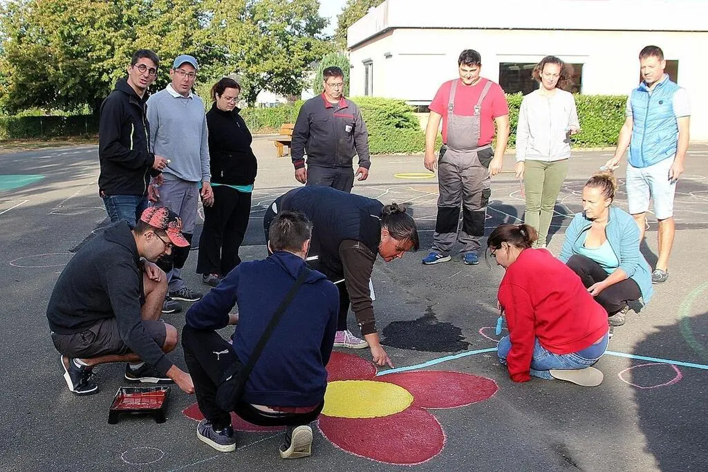 Ils en ont vu de toutes les couleurs, les parents d’élèves de l’école de Marigné-Laillé, pour figurer les fleurs, les lignes brisées, les petits pas, imaginés par le corps enseignant, qui serviront aux enfants à jouer.