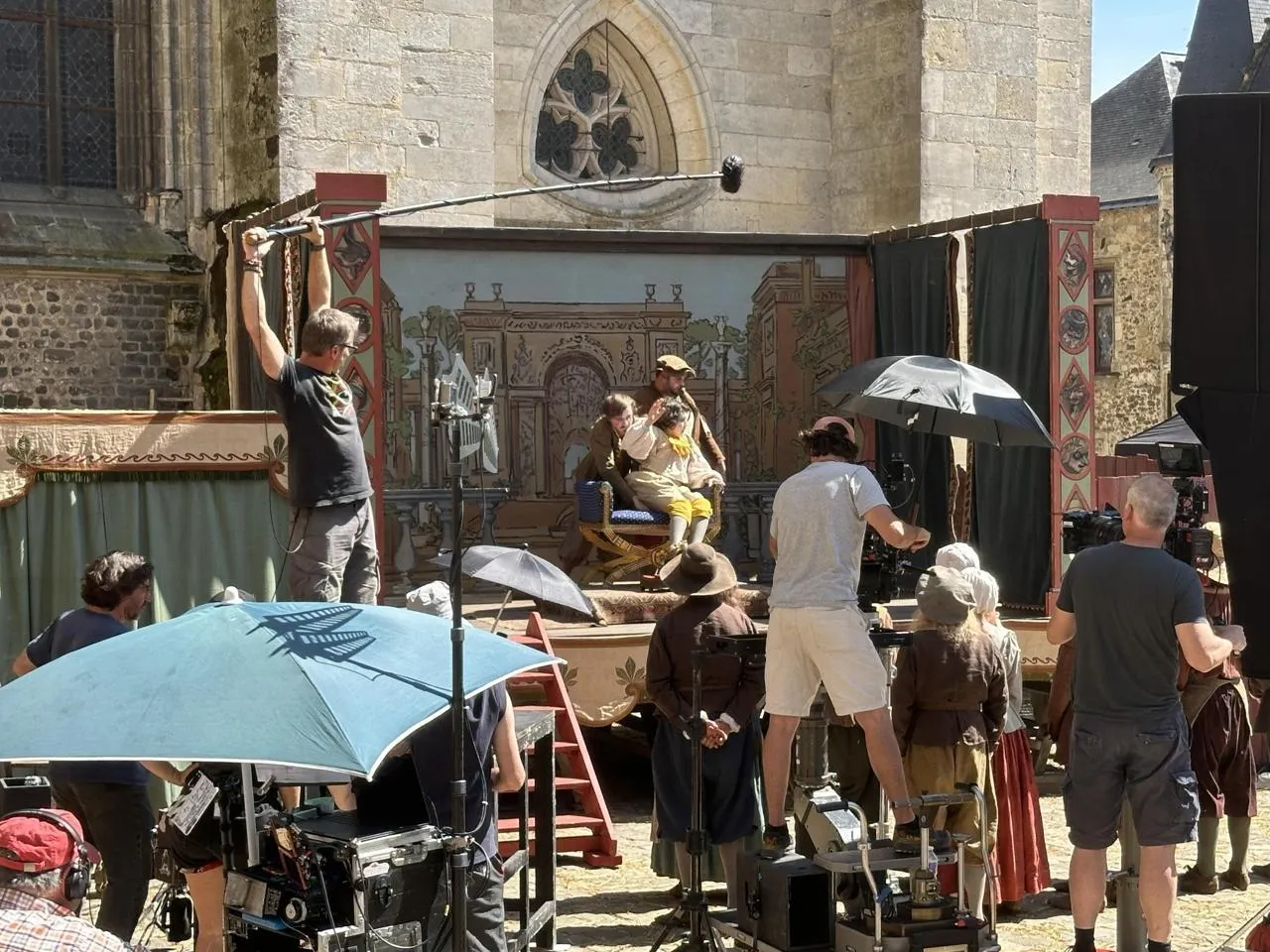 Lors du tournage du film « Les Caprices de l’Enfant Roi » dans le Vieux-Mans. © Archives Ouest-France