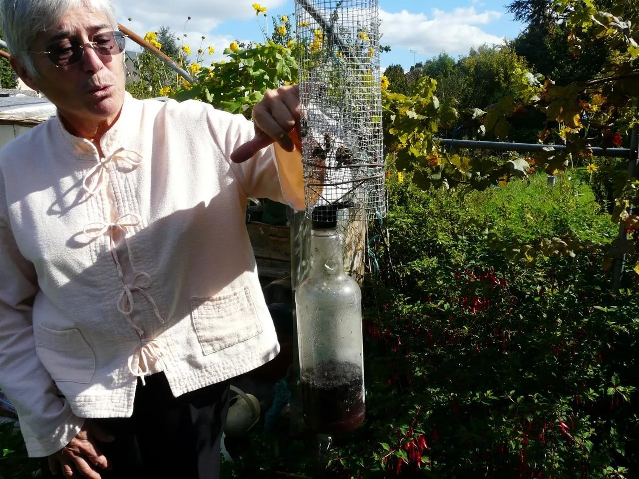 Un autre type de piège avec des orifices par lesquels entrent les frelons, mais n’arrivent pas à sortir. © Le Maine Libre