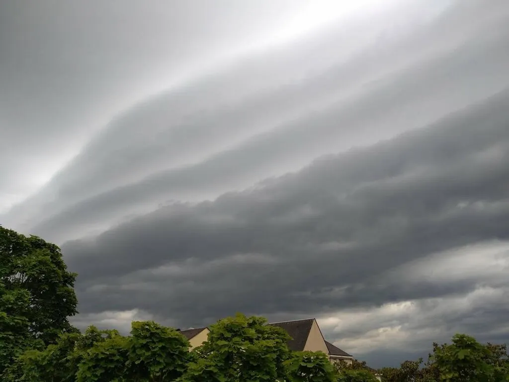 Pendant que le sud-Sarthe subissait un déluge zébré d’éclairs, un Arcus impressionnant roulait au-dessus du Mans, ici, avenue Bollée. Un nuage à l’évolution aussi brève que spectaculaire. Puis l’orage s’est installé dès 10 h 45. © Ouest-France