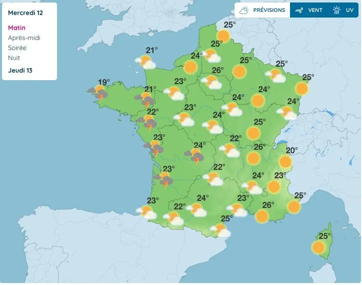 Une nette dégradation orageuse est attendue par l’ouest, ce mercredi, mais il fera toujours très chaud, selon les prévisions de Météo France.