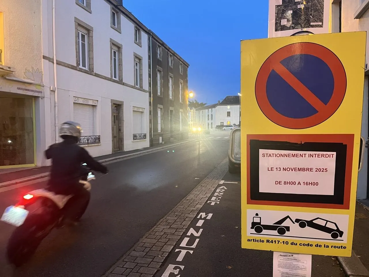 Tout au long du périmètre de la reconstitution de la scène de meurtre, prévue jeudi 13 novembre, des panneaux préviennent les riverains à Mortagne-sur-Sèvre. © Ouest-France