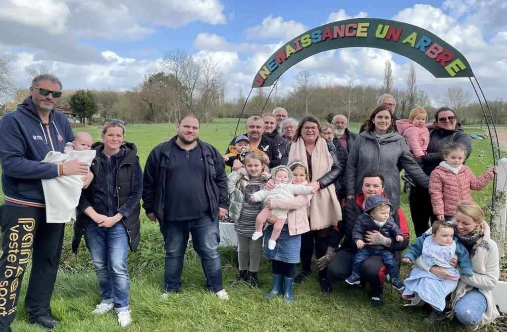 C’est sous un soleil printanier que les huit parents, leurs bébés et leurs familles, ont personnalisé l’ardoise placée au pied de l’arbre choisi, avec le prénom et la date de naissance de leur enfant.  Bienvenue aux quatre filles, Chloé, Alba, Zola et Théa aux quatre garçons, Erwann, Alessio, Sten et Hugues »,