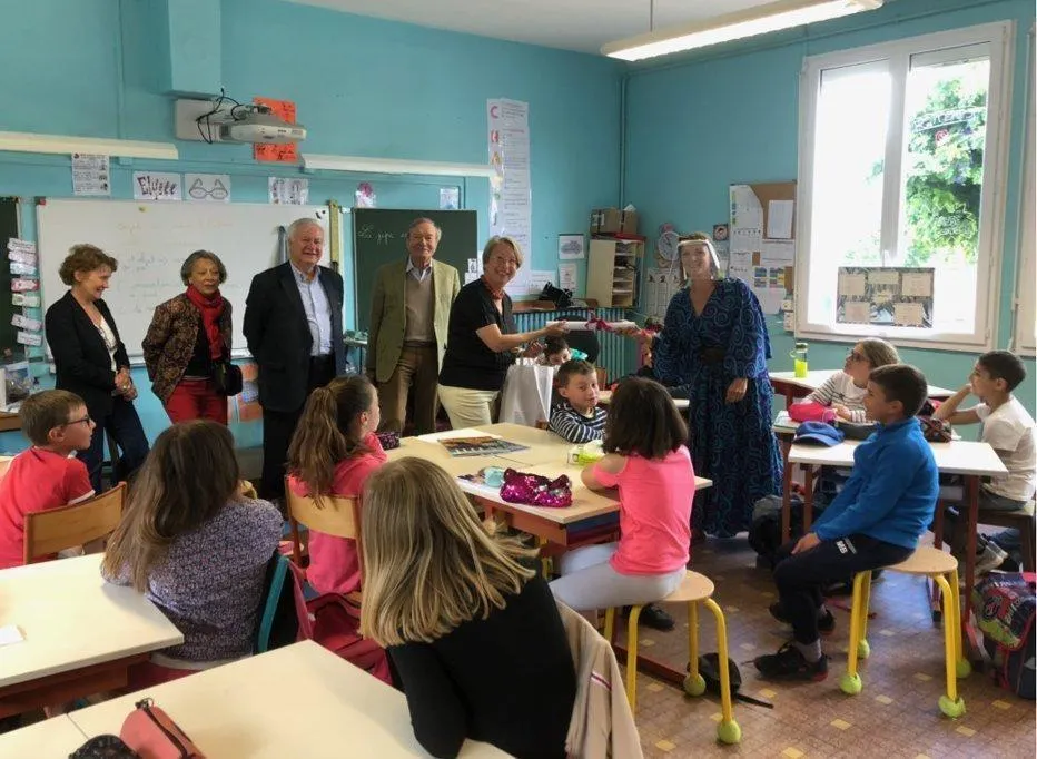 La remise du prix régional a eu lieu à l’école Fernand-Vivet en présence de Pierre de Mascureau, délégué régional ; Antoine Lescop de Moÿ, délégué Sarthe ; Béatrice Lescop de Moÿ, Geneviève Plante, déléguée adjointe Sarthe et déléguée régionale activités concours scolaire patrimoine ; Françoise Chaserant, déléguée adjointe Sarthe et Guy Cosme, maire de Mézières-sur-Ponthouin.