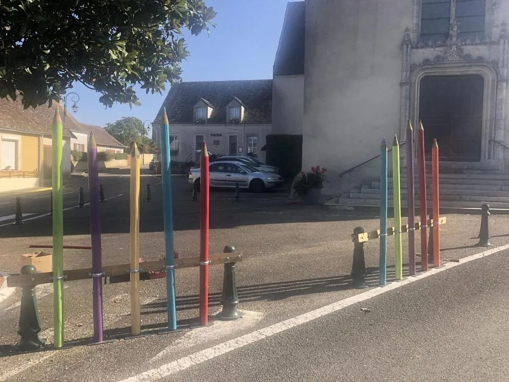 Le village s’est mis au diapason de la rentrée en plantant des crayons géants. OUEST-FRANCE