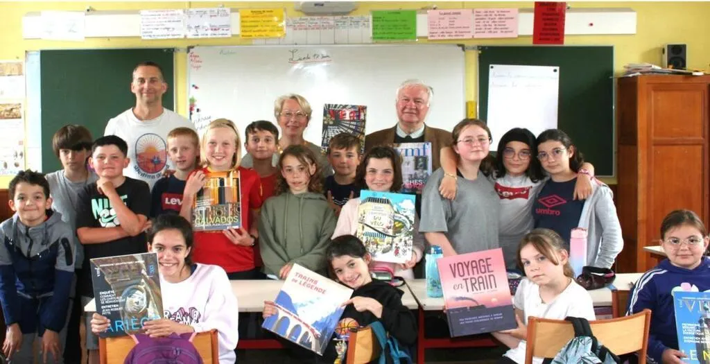 Dernièrement Patrick Lejeune, professeur des écoles à l’école Fernand-Vivet, accueillait une délégation des Vieilles Maisons Françaises, afin de recevoir le prix départemental. Il faut noter qu’il y a deux ans, cette même école avait reçu le prix national des Vieilles Maisons Françaises. Le thème cette année était axé sur une enquête policière pour enfants. Les 18 élèves de CM2 et leur professeur ont reçu des mains de Geneviève Plante, représentante départementale et régionale pour le secteur scolaire, accompagnée d’Antoine Lescop de Moy délégué départemental, trois livres qui traitent du déplacement à vélo ou en train.  L’objectif de ce concours est aussi de toucher les enfants sur la beauté du patrimoine qui nous entoure et rendre palpable la richesse des bâtiments sur le territoireÂ