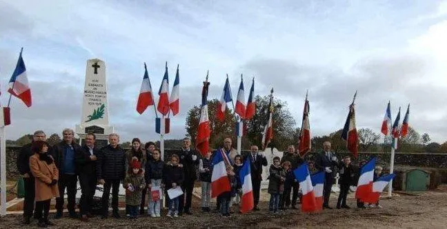 Quatorze enfants de 6 à 14 ans ont répondu à l’invitation de la municipalité lors des cérémonies du 11 Novembre. Ils ont chacun soit porté un drapeau, soit une gerbe qu’ils ont déposée au cimetière. Tous se sont retrouvés devant le monument aux morts autour du maire, des conseillers et des porte-drapeaux. © Mairie de Mézières