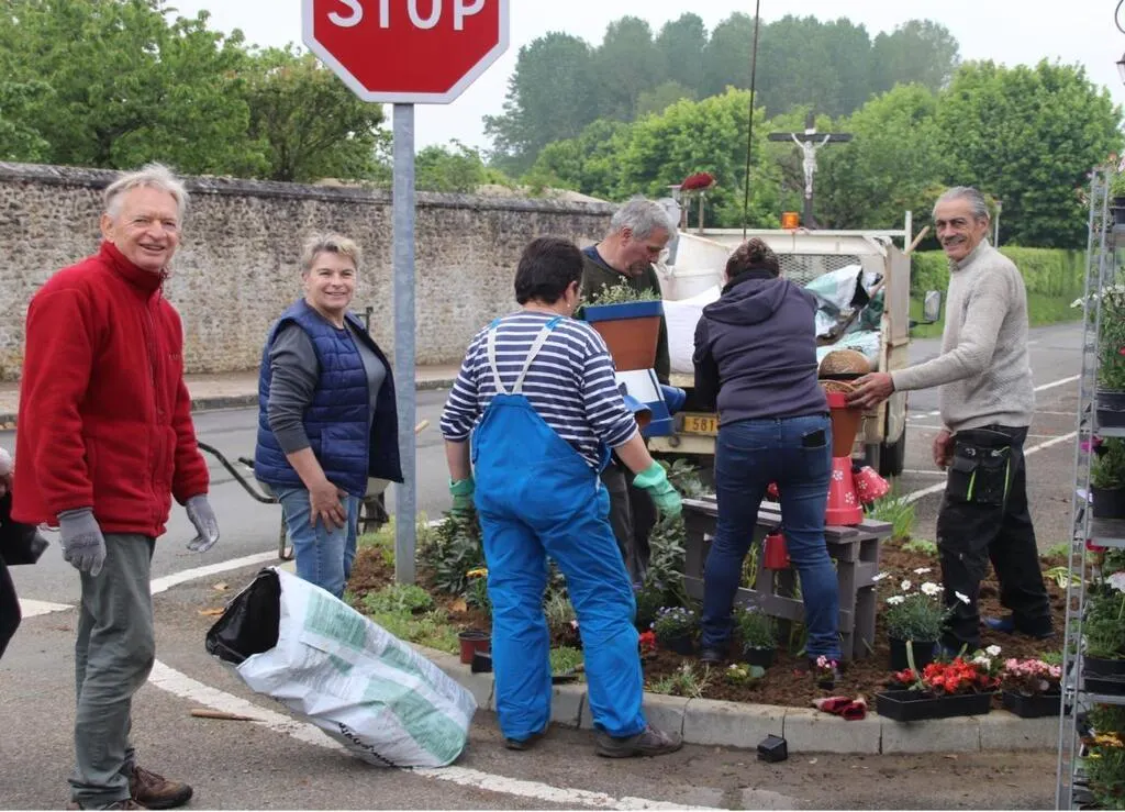 Les bénévoles ont réorganisé les plantations du village pour économiser l’eau d’arrosage. © mairie