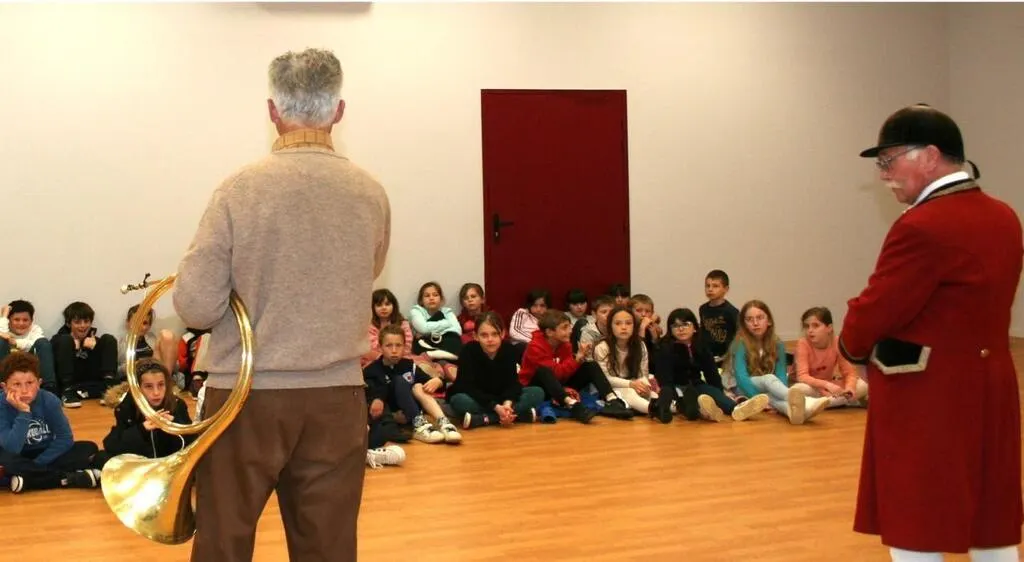 L’association La Palette macérienne avec la collaboration de l’école Fernand-Vivet ont invité deux sonneurs de trompe à venir expliquer aux enfants leur rôle dans une partie de chasse.