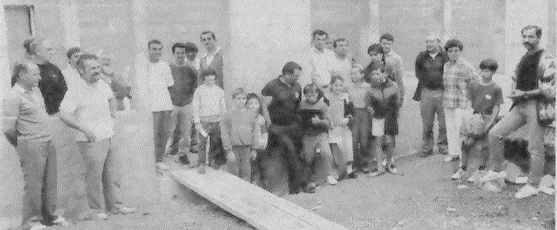 Construction de la salle en 1991. On reconnaît certains acteurs de l’époque : Jean Lanoë, Henri Sébilo, Daniel Duneau, Roger Denis, Guy Cipriani… accompagnés de joueurs encore présents aujourd’hui. © Archives ASM