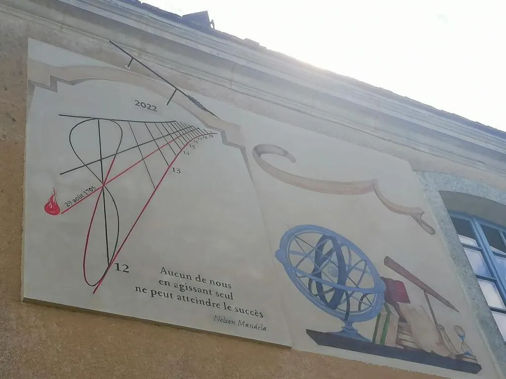 Le cadran solaire sur la façade ouest de la mairie a été inauguré en grande pompe, samedi 18 mai 2024. © Ouest-France