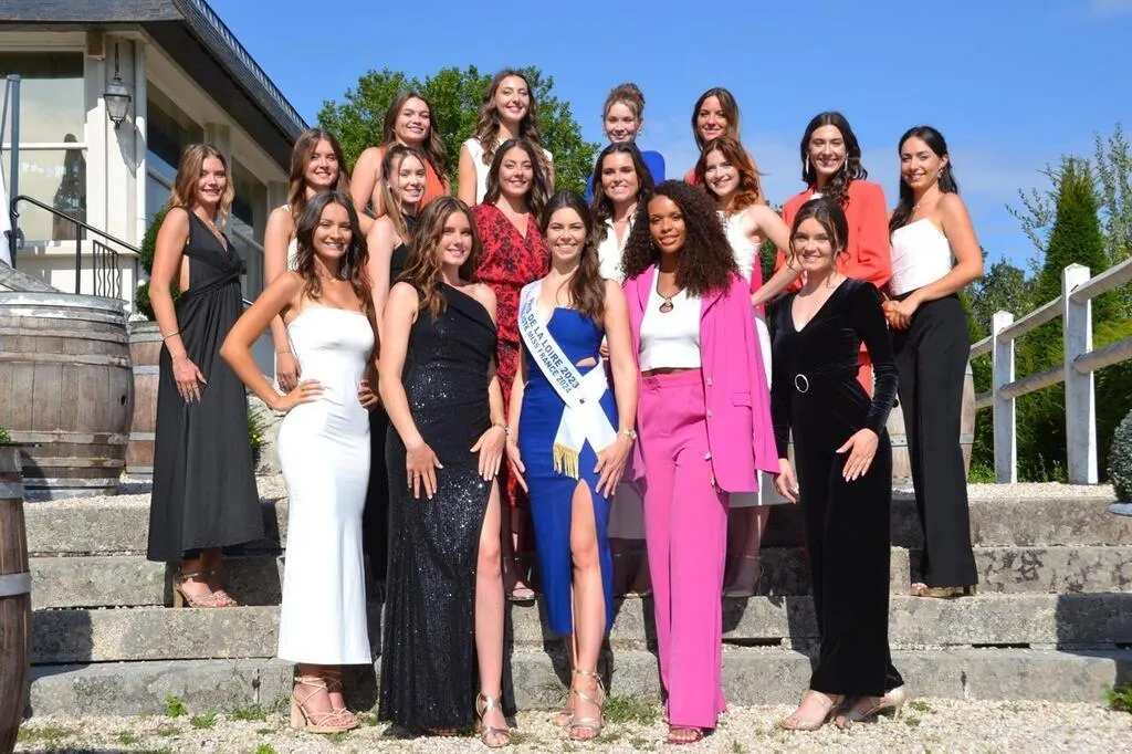 Les seize candidates de la région visent le titre de Miss Pays de la Loire, pour succéder à Clémence Ménard (au centre), finaliste de Miss France 2024. © CO