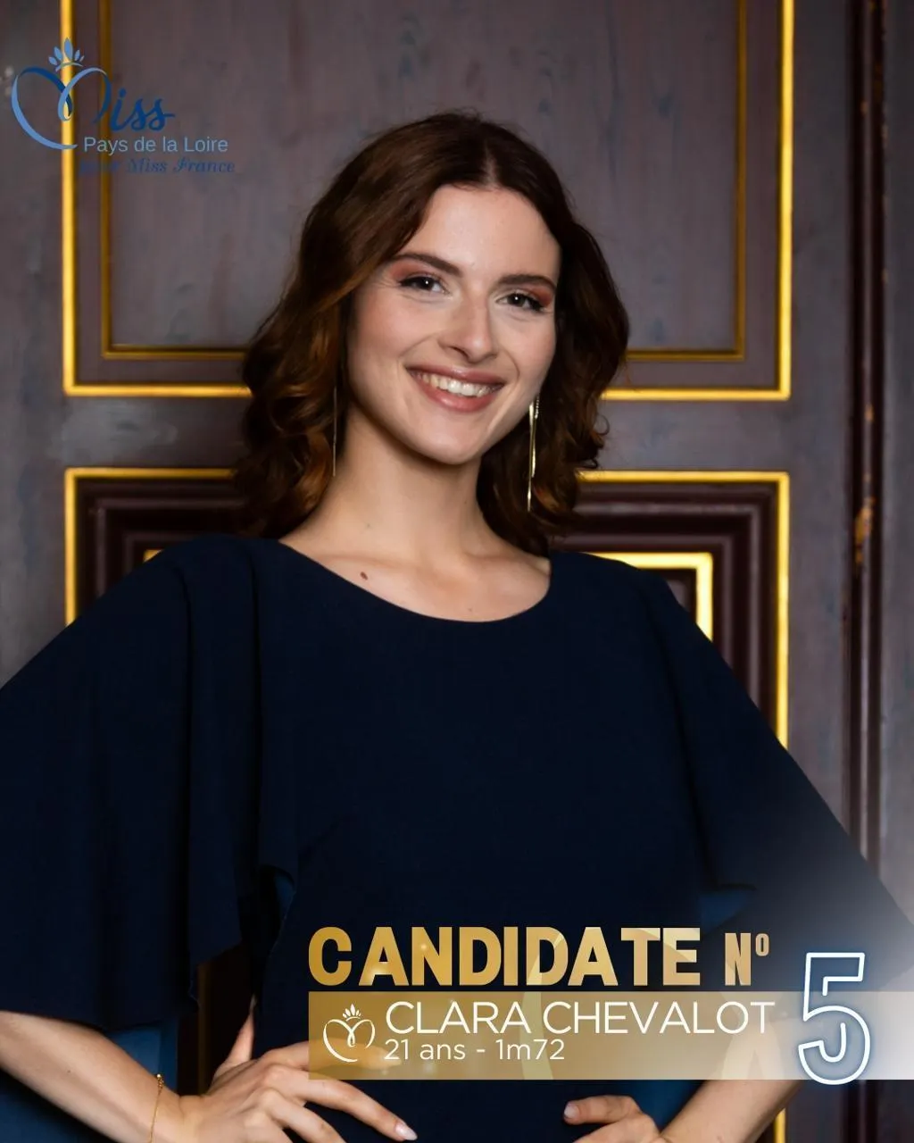 Autre prétendante au titre : Clara Chevalot. Âgée de 22 ans, la Mancelle avait été sacrée Miss Sarthe en 2023 avant de participer sans succès à l’élection de Miss Pays de la Loire. Ce sera peut-être la bonne fois pour elle cette année. Étudiante elle aussi en langues, littératures et civilisations étrangères et régionales, elle pratique par ailleurs la danse de cabaret.