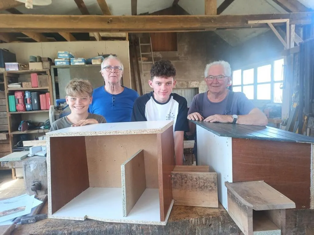 Accompagnés Jean-Claude Deschamps, kiné retraité, passionné par le travail du bois, ils ont fabriqué 3 abris à hérissons.