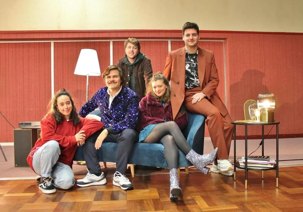 Léa Binsztock, Paul Meynieux, Felix Geslin, Camille Gélin et Charles Patault, de la compagnie Les Assoiffés d’Azur, sont en résidence à la salle des fêtes de Parcé-sur-Sarthe (Sarthe) jusqu’au dimanche 6 février 2022. © Ouest-France