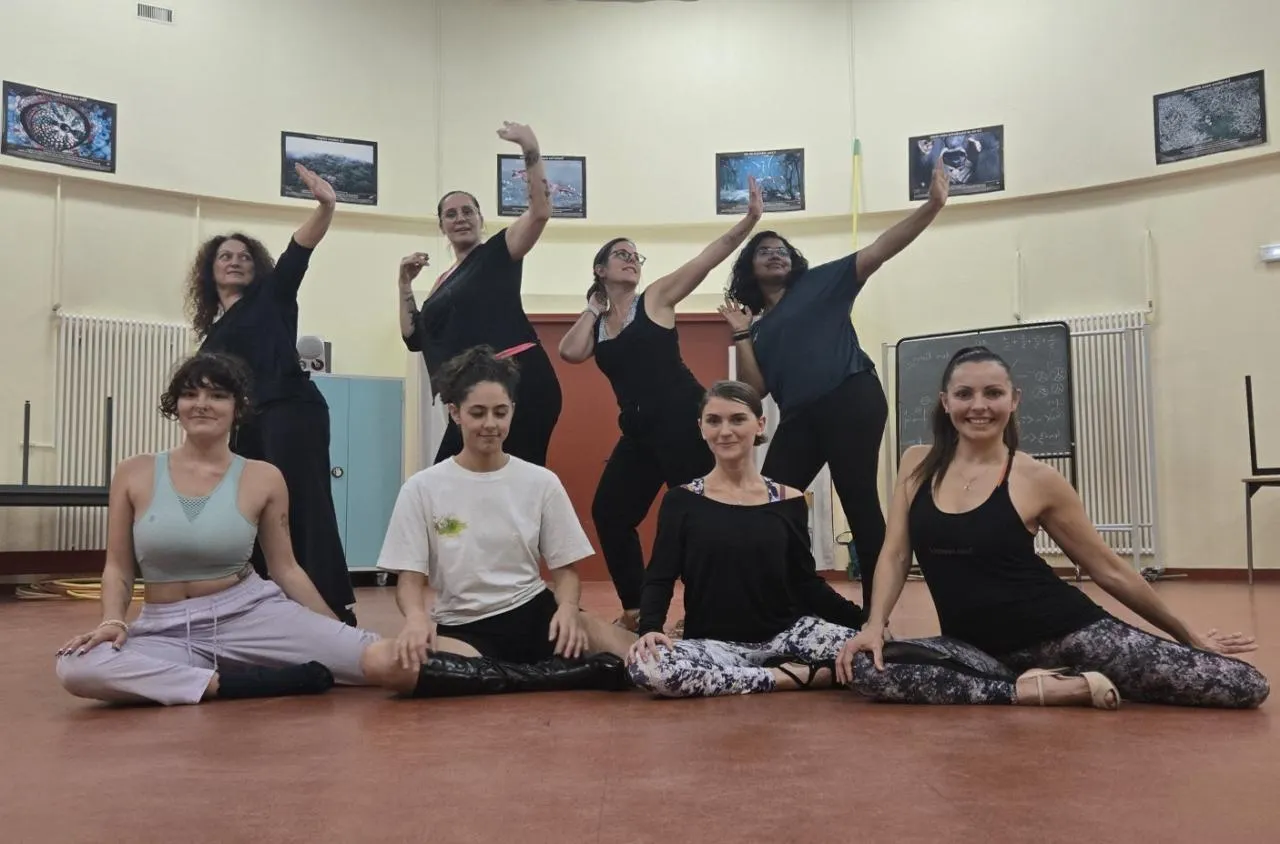 Sept stagiaires, toutes néophytes, ont testé la danse heels sous la houlette d’Émilie Richard Philippo © Le Maine.