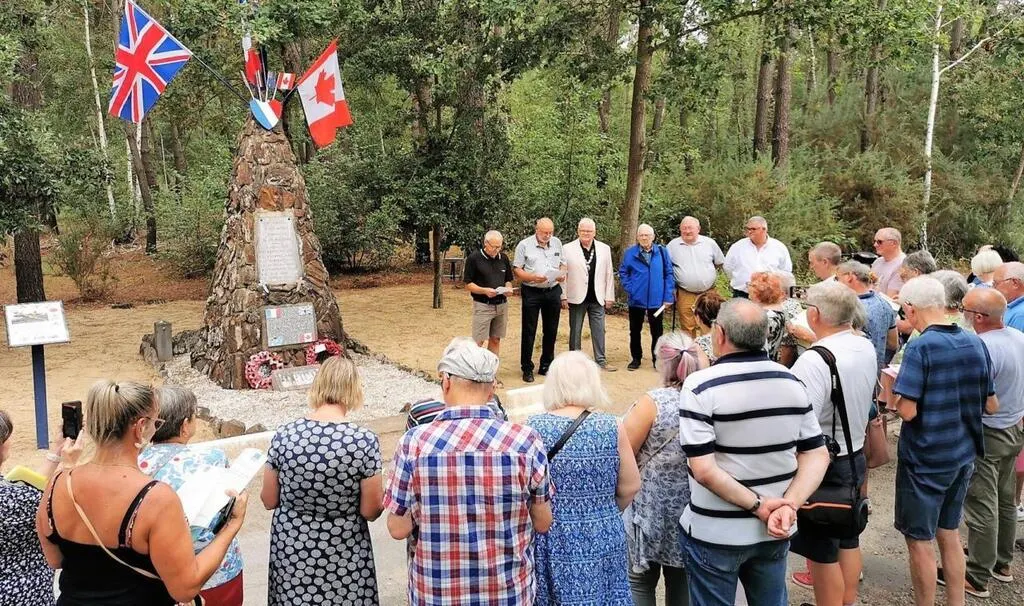 Les officiels de Moncé-en-Belin et de Welton en Angleterre ont rendu hommage aux aviateurs tombés au-dessus de la forêt de Moncé. © Le Maine Libre.