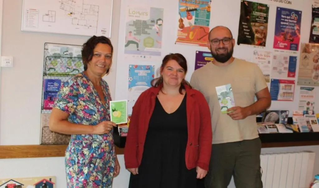 Émilie Georget du Val’Rhonne, Manon Thierry à la Ruche et Charly Blin, référent des ateliers loisirs à la Ruche, lors d’une journée de présentation. © Ouest-France