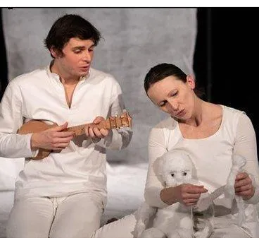 « Une plongée dans un monde blanc et cotonneux pour les plus jeunes. Dans ces dunes, deux personnages : enfants ? Parents ? Semeurs d’étoiles ? Arpenteurs de nuages ? Qui sait ? Ils babillent, jouent ensemble, se chamaillent, se cherchent et finissent par trouver, créer un être tout blanc… Ouatou. Il est moelleux, calme et curieux, prêt à partir à l’aventure, des autres, de lui, du monde. Ouatou explore la matière sous toutes ses coutures – ouate, fil, tissu – et les formes – doudou, monstres… Regarder les nuages, s’inventer une histoire sans logique ni raison. Laisser voguer son imagination. Être dans un rêve ou le créer. C’est est un voyage en douceur et en humour pour grandir maintenant ou un peu plus tard. »